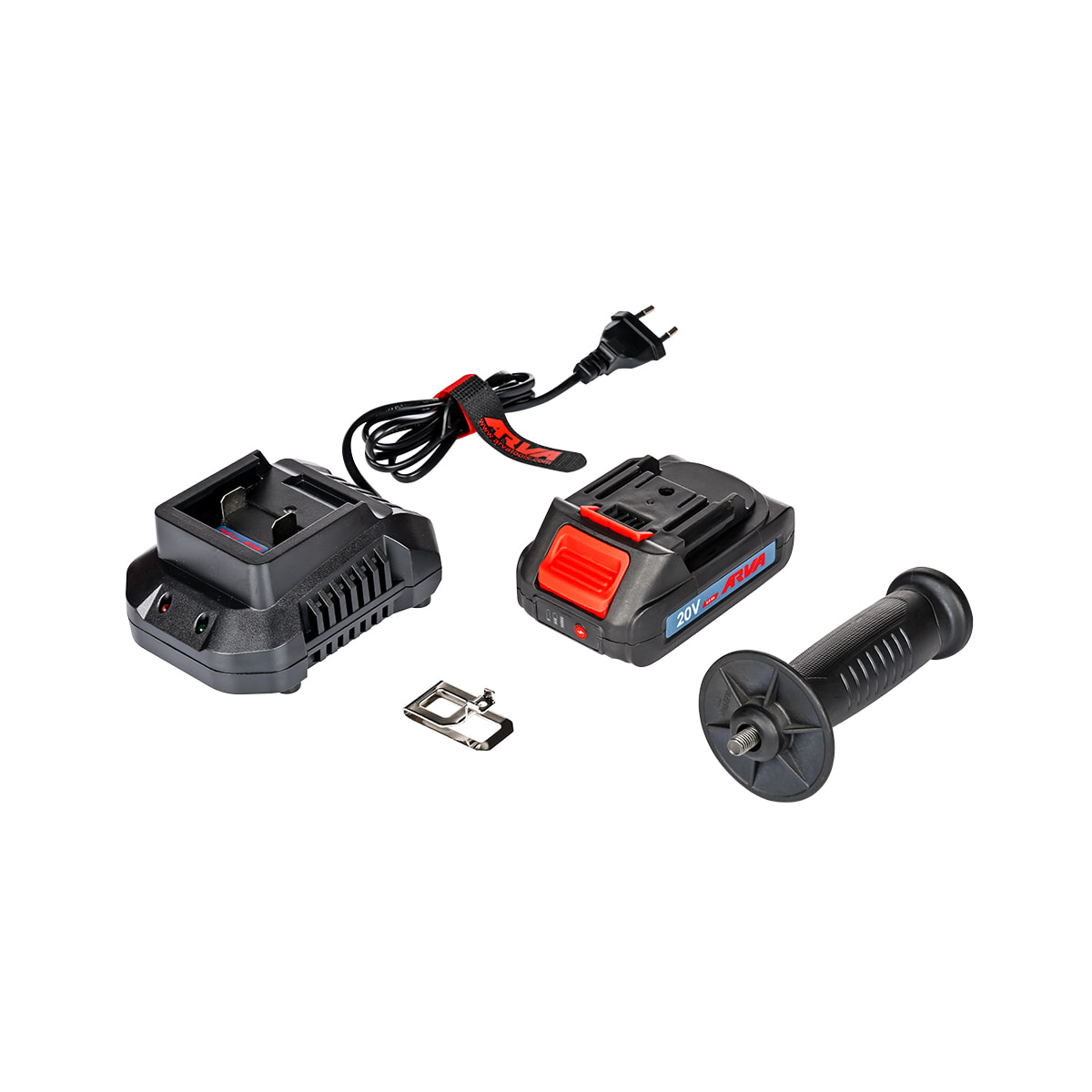 - متعلقات: شارژر، 2 عدد باتری لیتیوم یونی 20 ولت 4 آمپر ساعت، دسته جانبی و کیف BMC